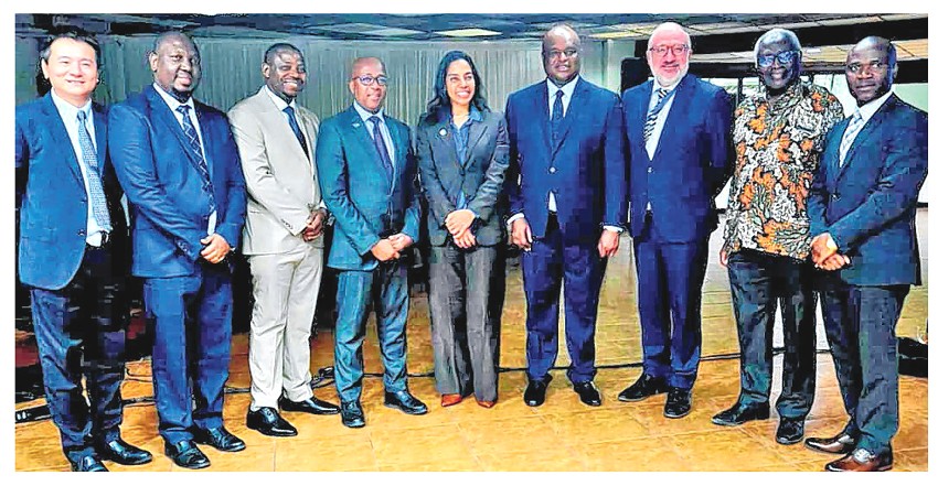 Katibu Mkuu Wizara ya Uchumi wa Buluu na Uvuvi, Kapteni Hamad Bakar Hamad, (wa nne kushoto) katika picha ya pamoja na Katibu Mkuu wa Mamlaka ya Kusimamia Sakafu ya Bahari Kuu ya Kimataifa (ISA), Leticia Carvalho (wa tano kushoto) na Kaimu Mwakilishi wa Kudumu wa Tanzania Umoja wa Mataifa, Balozi Dk. Suleiman Haji Suleimani baada ya kikao kilichobeba ujumbe wa ‘From Needs to Action’ jijini Kingston, Jamaica mwishoi mwa wiki. Watatu kushoto) ni Mkurugenzi Mkuu wa Mamlaka ya Kusimamia Uvuvi wa