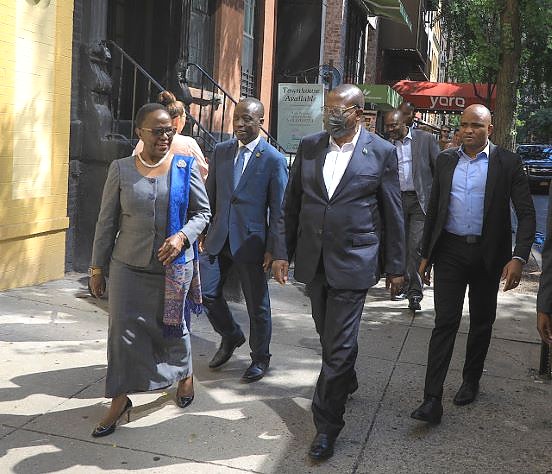 Mhe. Balozi Hussein Athuman Kattanga, Mwakilishi wa Kudumu wa Jamhuri ya Muungano wa Tanzania Umoja wa Mataifa (kulia) akiwasilisha Hati za Utambulisho