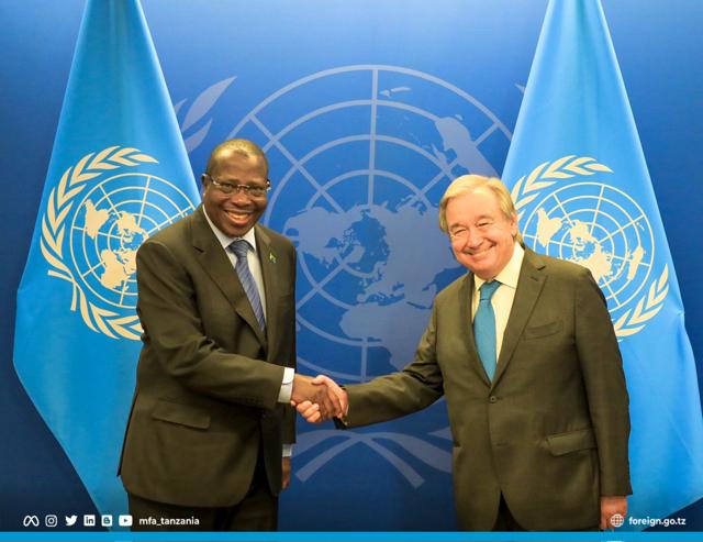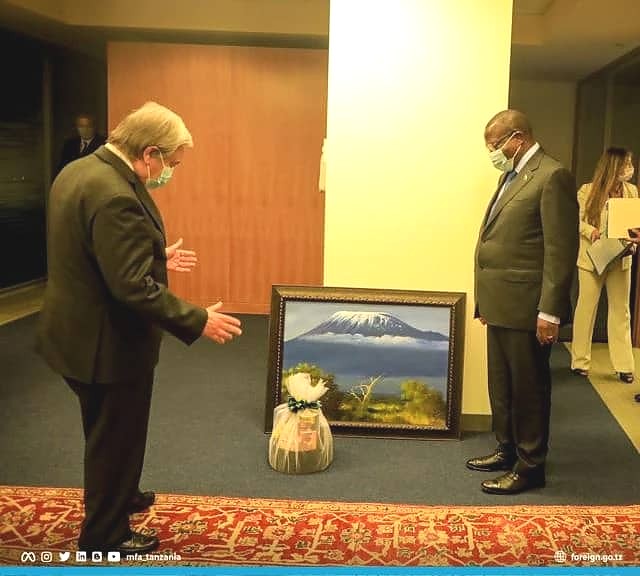 Makamu wa Rais wa Jamhuri ya Muungano wa Tanzania Mhe. Dkt. Philip Isidor Mpango amekutana kwa mazungumzo ya faragha (Tete a tete ) na Katibu Mkuu wa Umoja wa Mataifa Mhe. Antonio Guterres katika Ofisi za Umoja wa Mataifa jijini New York tarehe 22 Septemba 2022.