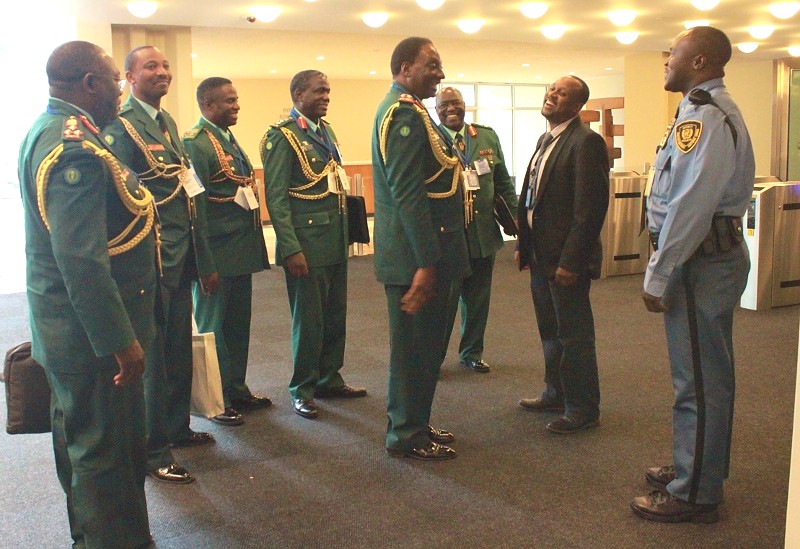 ”mnatuwakilisha vema?” ndilo swali ambalo Mkuu wa Majeshi ya Ulinzi, Jenerali Mwamunyange alilowauliza watanzania hawa wawili, Afisa wa Usalama wa UN Bw. Jacob Mwashiozya na Bw. Joseph Msami, wa Idhaa ya Kiswahili ya Umoja wa Mataifa walipokuwa wakisalimiana naye na ujumbe wake mara baada ya kumalizika kwa mkutano wa wakuu wa majeshi ya ulinzi