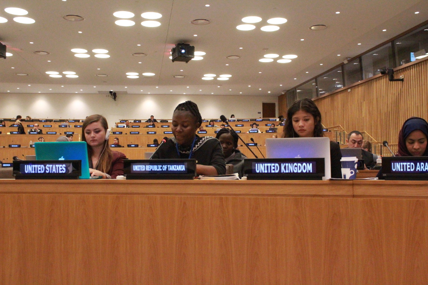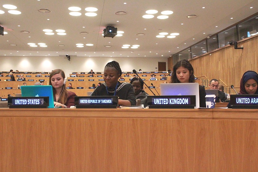 Bi Vickness Mayao kutoka Wizara ya Maendeleo ya Jamii, Jinsia na Watoto, akichangia majadiliano kuhusu haki za mtoto wakati wa Mkutano wa Kamati ya Tatu ya Baraza Kuu la Umoja wa Mataifa. Kamati iliyokuwa ikijadili kuhusu haki za mtoto ambapo akizungumza kwa Niaba ya Serikali Bi. Mayao amesema Serikali inaendelea na uboreshwaji wa Sheria mbalimbali zinazolinda haki ya Mtoto huku ikisisitiza kwamba wajibu wa kwanza wa kumlinda mtoto dhidi ya madhara yoyote ni ya Wazazi wenyewe. aliyekaa nyuma ni Afisa mwingine kutoka Wizara ya Maendeleo ya Jamii, Jinsia na Watoto Bi. Grace Mbwilo.